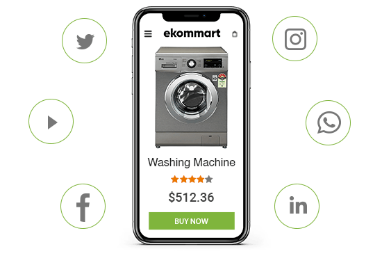 • Sell across different channels like ecommerce website, mobile apps, PWA sites, and social commerce pages